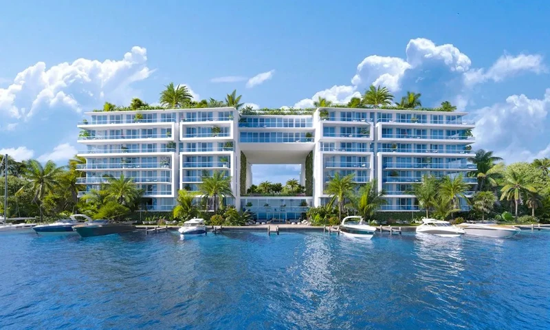 Estado del proyecto: Desarrollo boutique de lujo frente al agua con marina privada y amenidades tipo resort.